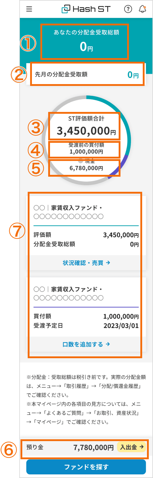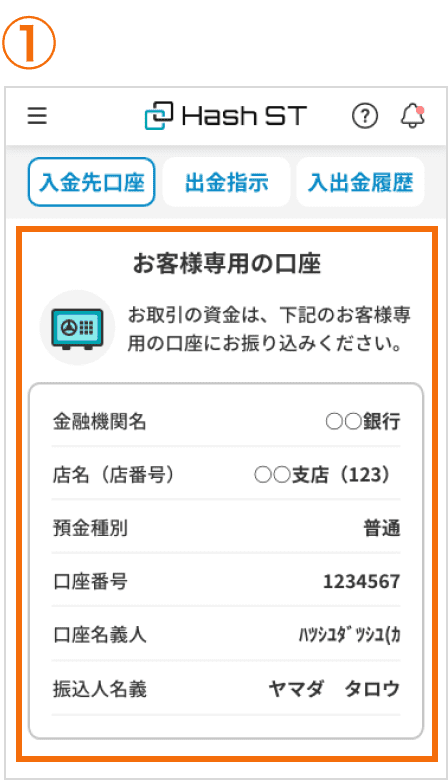 ご入金いただくための、お客様専用の口座情報をご確認いただけます。